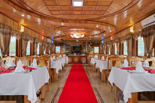 12.30: Have lunch with Vietnamese seafood be served on board by the crew while the boat will take you around the most beautiful areas of the bay with thousands of different islands such as Dog islet, Incense Burner islet, Fighting Cock Islet…